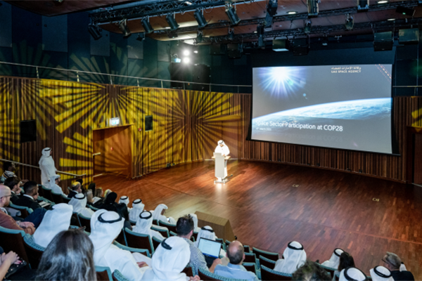 دبي، مارس 2023: تماشياً مع "الطريق إلى 28"، أول فعالية رسمية لمؤتمر كوب 28، استضافت وكالة الإمارات للفضاء ورشة عمل "الانطلاق نحو هدف 1.5 درجة مئوية" بالتعاون مع جهات رائدة في قطاع الفضاء في جناح تيرا بمدينة إكسبو دبي، بهدف تعزيز التعاون والتنسيق بين جهود الجهات والمؤسسات المعنية في قطاع الفضاء في مجال مكافحة التغير المناخي، مما يشكل إنجازاً مميزاً نحو تحقيق هدف الحد من ارتفاع درجات الحرارة إلى 1.5 درجة مئوية.