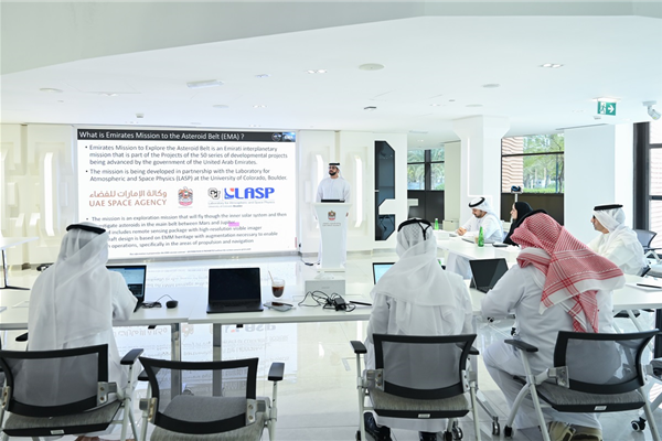 وشارك في الاجتماع، لجنة لمراجعة المشروع برئاسة مارك لانتون، مستشار هندسي أول، والتي تضم: خبراء من وكالة الفضاء اليابانية (JAXA) والشركاء الاستراتيجيين الدوليين والمحليين وشركاء المعرفة، إلى جانب الفريق العلمي لمهمة الإمارات لاستكشاف حزام الكويكبات وقيادات وموظفي وكالة الإمارات للفضاء. وشهد الاجتماع، تقديم سلسلة من العروض التقديمية لبعض الشركات الإماراتية الناشئة في قطاع الفضاء، حيث تضمنت مقدمة عن المهمة، ومفهوم العملية، والأهداف العلمية، وموارد الفريق.