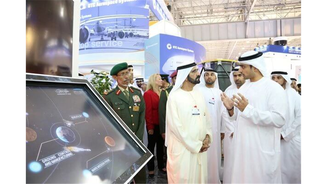 زار صاحب السمو الشيخ محمد بن راشد اَل مكتوم نائب رئيس الدولة رئيس مجلس الوزراء حاكم دبي "رعاه الله"، جناح وكالة الإمارات للفضاء في معرض دبي للطيران، الذي انطلق (اليوم) وتستمر فعالياته حتى 12 نوفمبر الجاري، في مركز معارض دبي ورلد سنترال بمطار آل مكتوم.