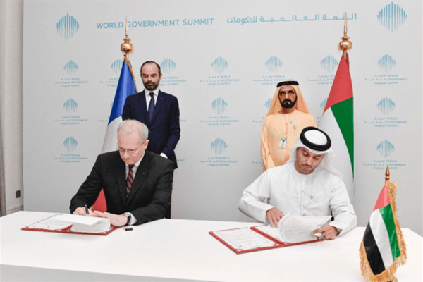 The MoU was signed by H.E. Dr. Eng. Mohammed Nasser Al Ahbabi, Director General of the UAE Space Agency, and Jean-Yves Le Gall, President of the French National Centre for Space Studies, in the presence of H.H. Sheikh Mohamed Bin Rashid Al Maktoum, Vice President and Prime Minister of the UAE and Ruler of Dubai, and H.E. Edouard Philippe, Prime Minister of France.
