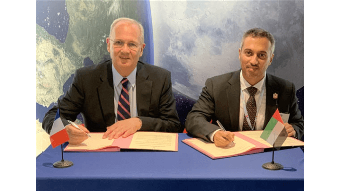 The joint declaration was signed by His Excellency Dr. Ahmad Belhoul Al Falasi, Minister of State for Higher Education and Advanced Skills and Chairman of the UAE Space Agency, in the presence of Emmanuel Macron, President of France, His Excellency Dr. Eng. Mohammed Nasser Al Ahbabi, Director General of the UAE Space Agency, and a number of officials, engineers, and international representatives.