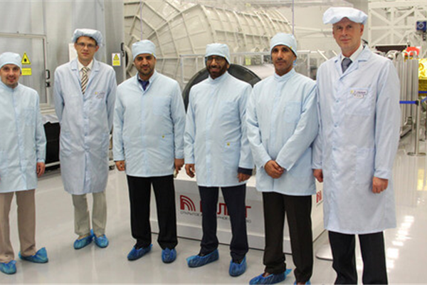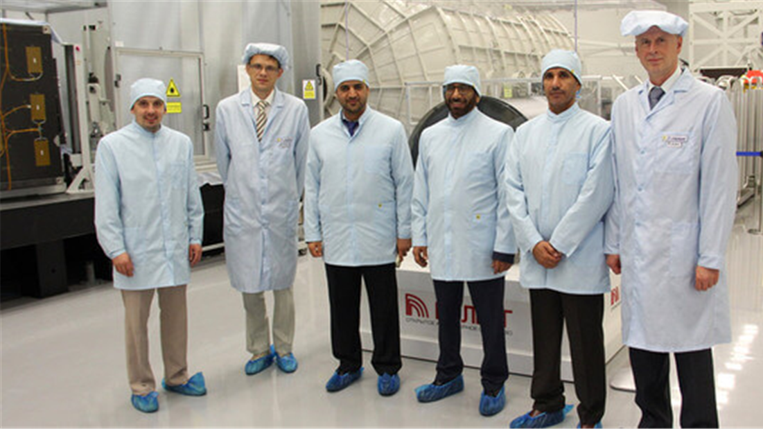 The UAE delegation was led by H.E. Dr. Khalifa Al Rumaithi, Chairman of the UAE Space Agency, H.E. Dr. Mohamed Nasser Al Ahbabi, the Director-General, and a number of senior officials from the Agency. They met with a delegation headed by Sergei Gerolov, Chairman for Industries Council in the Republic of Belarus, First Deputy Director-General Chief Engineer of Peleng, the industrial arm of the Government of Belarus.