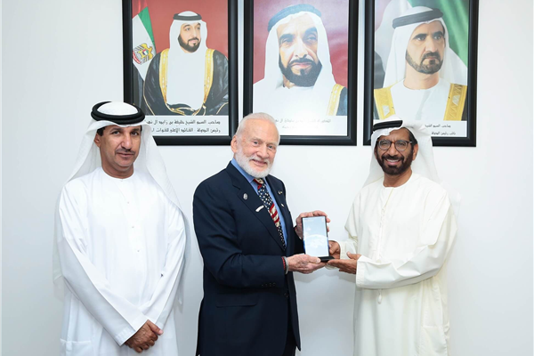 The UAE Space Agency welcomed famed astronaut and space icon Buzz Aldrin at its headquarters on Sunday. Mr. Aldrin met with H.E. Dr. Khalifa Al Romaithi, Chairman of the UAE Space Agency, H.E. Dr. Mohammed Al Ahbabi, Director General of the UAE Space Agency, and senior Agency officials to discuss cooperation and collaboration in the fields of space science, technology, education and exploration.